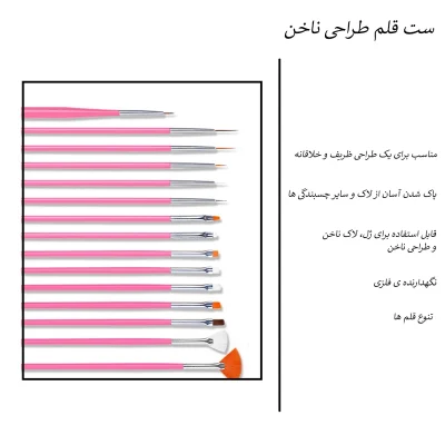 پک قلم طراحی ناخن شامل 15 قلم در انواع مدل های مورد نیاز برای طراحی حرفه ای را شامل می