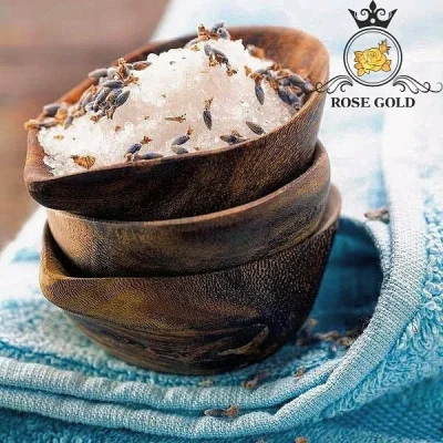 نمک حمام رز گلد مدل (اسطوخودوس) به همراه جوانه های اسطوخودوس با رایحه دلنشین بدون هیچ گونه افزودنی شیمیای (100%
