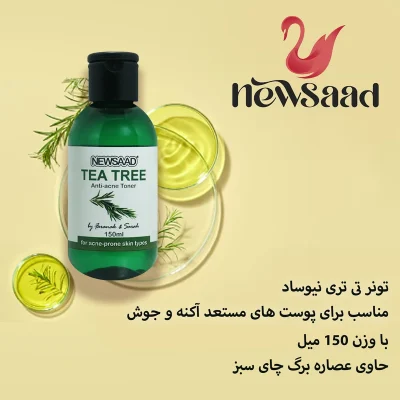 تونر پاک کننده صورت نیوساد مدل Tee Tree مناسب برای پوست آکنه ای حجم 150 میلی لیتر بسته 3 عددی