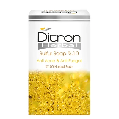 صابون گوگرد 10% دیترون موثر در درمان آکنه، جوش های سر سفید، درماتیت سبورئیک، گال، کنترل روزاسه و موثر در
