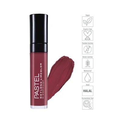 رژ لب مایع مات بادوام پاستل مدل day long بافتی سبک، ماندگاری بالا و ترکیبات مرطوب‌کننده دارد که از خشکی