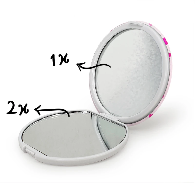 آینه های جیبی خندالو مدل تاشو، از جنس پلاستیک فشرده ABS تولید شده و به رنگ سفید می باشد. یکی از آینه ها ابعاد واقعی را نشان داده و دیگری با قابلیت بزرگنمایی، جزئیات را بهتر نمایش می دهد.