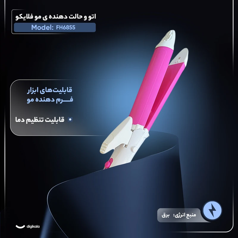اتو و حالت‌دهنده موی فلایکو مدل FH6855، یک ابزار دو کاره از برند فلایکو است که امکان صاف‌کردن و فرم‌دهی مو را در یک دستگاه واحد فراهم می‌کند و برای صرفه‌جویی در زمان و فضا ایده‌آل است. صفحات سرامیکی این دستگاه حرارت را به‌طور یکنواخت توزیع می‌کنند و با لغزندگی مناسب، نتیجه‌ای صاف و یک‌دست ایجاد می‌کنند؛ طراحی لبه تخت صفحات امکان ایجاد مدل‌های صاف یا موج‌دار با دقت بالا را می‌دهد. طول سیم ۱۶۰ سانتی‌متر آزادی حرکت کافی فراهم می‌کند تا در حین استفاده به راحتی به تمام نقاط مو دسترسی داشته باشید. دمای دستگاه بین ۱۲۰ تا ۱۴۰ درجه سانتی‌گراد قابل تنظیم است تا با توجه به جنس مو و نتیجه موردنظر، حرارت مناسب را انتخاب کنید. زمان گرم‌شدن تنها ۳۰ ثانیه است و خاموشی خودکار پس از ۳۰ دقیقه ایمنی استفاده را تضمین می‌کند. این محصول با منبع انرژی برق کار می‌کند و با طراحی ساده و کارآمد، گزینه‌ای مناسب برای کاربرانی است که به دنبال تجربه‌ای سریع، امن و راحت در حالت‌دهی مو هستند.