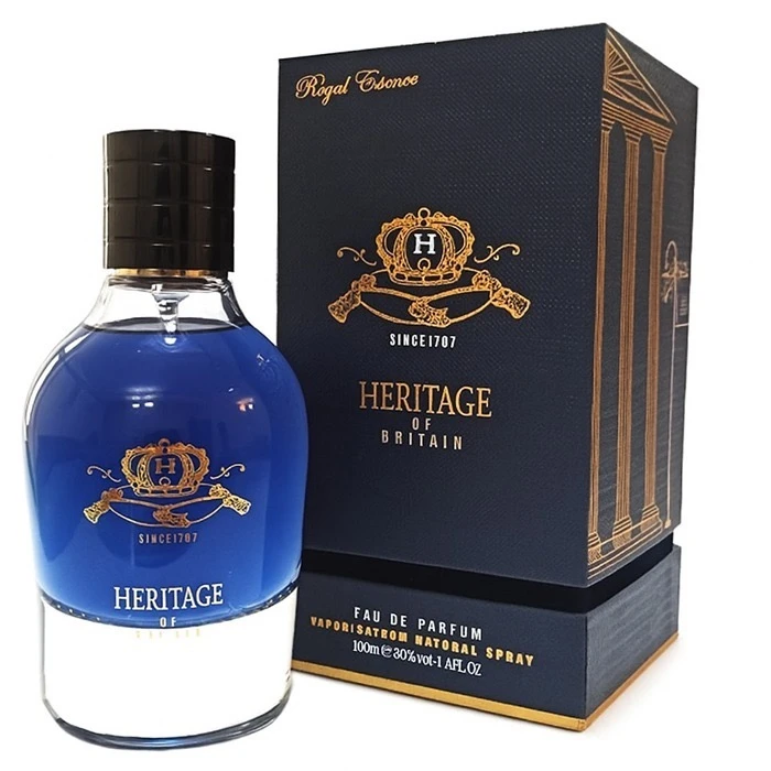 ادوپرفیوم مردانه Royal Essence Blue از برند هریتیج (Heritage) با رایحه‌ای ترکیبی از مرکبات و نت‌های دریایی و طبع خنک، گزینه‌ای ایده‌آل برای استفاده روزانه و مهمانی‌ها می‌باشد. این عطر با اسانس‌هایی مانند برگ به لیمو، گل زنبق، برگ بنفشه و چوب صندل ترکیب شده است. بطری شیک و سلطنتی آن به زیبایی محصول را تکمیل می‌کند. با ماندگاری بالا و پخش بوی عالی، این ادوپرفیوم برای آقایان طراحی شده است و تجربه‌ای خاص از عطر را به ارمغان می‌آورد.