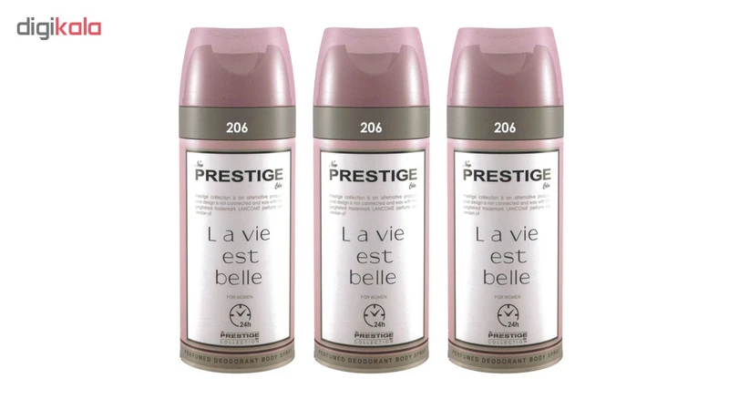 اسپری خوشبو کننده بدن زنانه پرستیژ مدل La Vie Est Belle حجم 150 میلی لیتر مجموعه 3 عددی