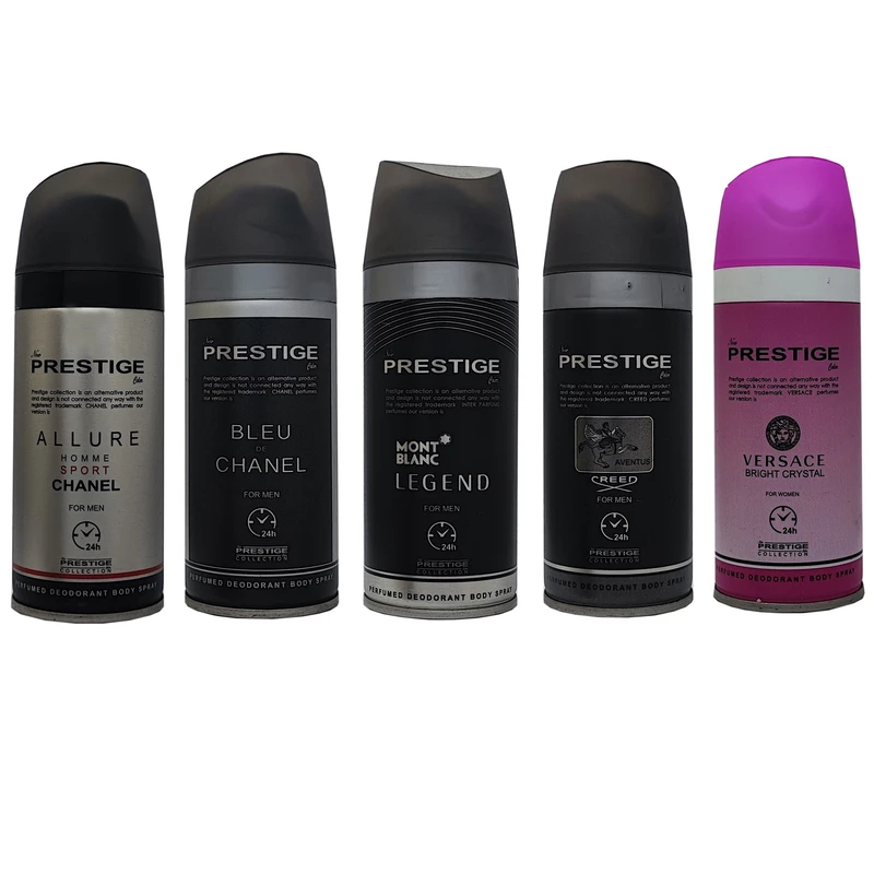 اسپری خوشبو کننده بدن پرستیژ مدل TOP8X کد 03 حجم 150 میلی لیتر مجموعه 5 عددی