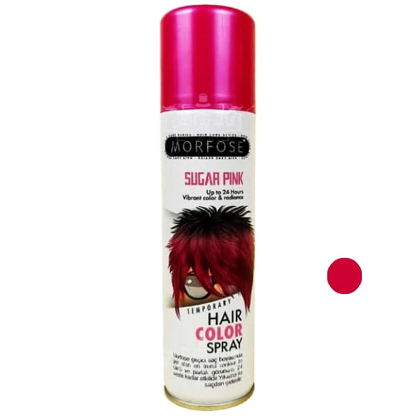 اسپری رنگ موقت مورفوس رنگ صورتی،بلافاصله رنگ موی شما را تغیر می دهد و ضاهری عالی ایجاد می کند.این محصول بعد از اولین شست و شو کاملا پاک می شود.این محصول در رنگ موی با پس زمینه روشن،روشن تر جلوه خواهد داد.این اسپری برای خانم ها و اقایان مناسب است.