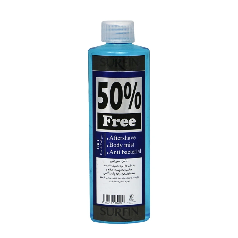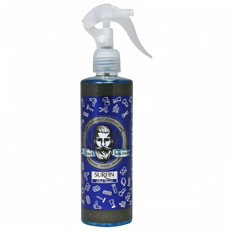 محلول آبرسان بعد از اصلاح (افترشیو) سورفین با خاصیت رطوبت رسانی فوق العاده و نرم کنندگی پوست، از ایجاد التهاب و قرمزی و سوزش پوست جلوگیری میکند و رطوبت سطح پوست را تنظیم می نماید. این محصول دو قلو ، دارای یک ظرف یدک می باشد که پس از اتمام ظرف اصلی مجدد شارژ می شود.رایحه این محصول اسانس پرطرفدار بلودانهیل (Dunhill Desire Blue) می باشد .