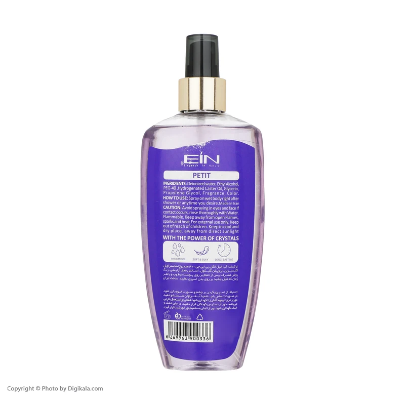 بادی اسپلش زنانه ای آی ان مدل PETIT با حجم ۲۵۰ میلیلیتر، رایحهای ملایم و دلنشین دارد که طراوت و شادابی را در طول روز حفظ میکند. فرمولاسیون این محصول حاوی ترکیبات مرطوبکننده است که به نرمی و لطافت پوست کمک کرده و از خشکی آن جلوگیری میکند. پخش بوی مطلوب و ماندگاری بالا، این بادی اسپلش را به گزینهای مناسب برای استفاده روزانه و حفظ حس تازگی در طول روز تبدیل کرده است.