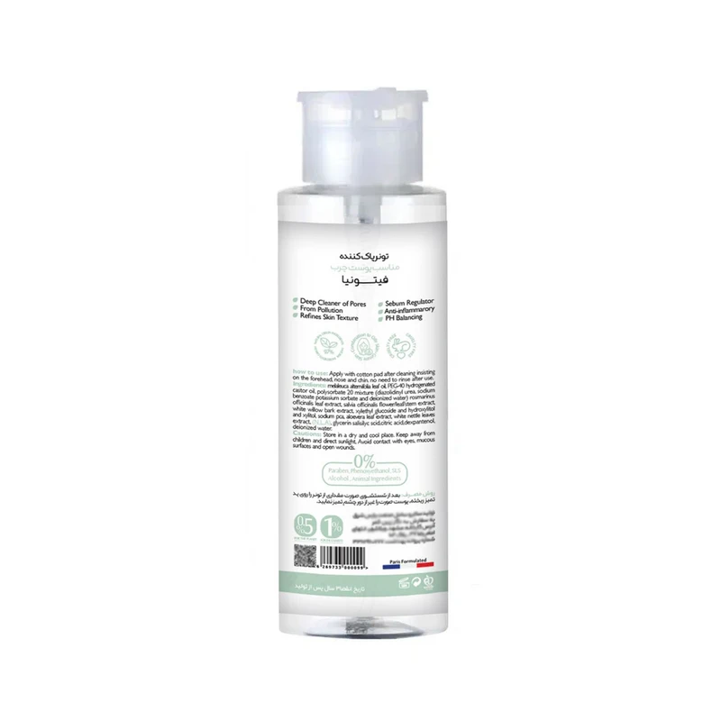 متعادل کننده ترشح چربی و کمک به برداشته شدن سلولهای مرده سطح پوست، بهبود منافذ باز پوست و پیشگیری از ایجاد جای جوش از دیگر مزایای قابل ذکر این محصول می باشند. ترکیبات آبرسان و ضدالتهابی این تونر نیز به نرمی و شادابی پوست کمک میکند و از مشکلاتی مانند جوش و التهاب جلوگیری خواهد کرد. کمک به جذب عمقی تر محصولات پوستی، دارای PH فیزیولوژیک سازگار با پوست انسان و فاقد پارابن و الکل بودن موجب می شود تونر پاک کننده پوست چرب فیتونیا، انتخابی ایده آل و کامل برای استفاده روزانه باشد.