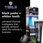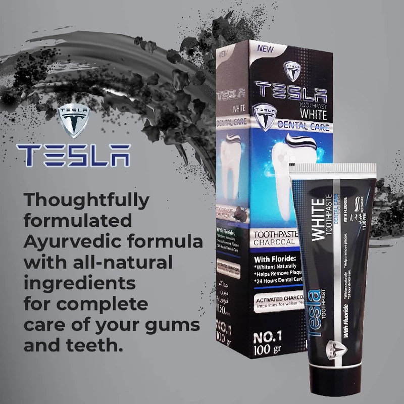 خمیر دندان ذغالی تسلا با مزایای متعددی از قبیل سفید کردن دندان و خوشبو کردن تنفس شما مصرف کننده غزیز همراه میباشد. خمیر دندان ذغالی تسلا از دهان و دندان شما تا 12 ساعت کاملا مراقبت میکند.این ویژگی در هر بار استفاده از این خمیر دندان پایدار است و دهان و دندان های شما در برابر میکروب ها محافظت می شوند.فرمولاسیون کاملا این محصول نیز از دیگر ویژگی های آن محسوب می شود که از جمله ترکیبات آن می توان به وجود سیلیکا تیکنز و کربوکسی متیل سلولز اشاره کرد.اثرات هر یک از این مواد در مراقبت و بهبود سلامت دهان و دندان کاملا اثبات شده است. خمیر دندان تسلا دارای بالاترین میزان فلوراید به میزان 1130 است و همچنین داشتن اسانس نعنا نیز یکی دگیر از مزایایی این خمیردندان است که باعث احساس خنکی و طعم خوشایند نعنا در دهان شما مصرف کننده عزیز می شود.با استفاده از خمیر دندان محافظت کننده تسلا مدل ذغالی علاوه بر مراقبت از دهان و دندان های خود، از ایجاد بوی خوش دهان و تازه شدن نفستان لذت خواهید برد. بعلاوه این خمیر دندان از تجمع جرم و پوسیدگی دندان جلوگیری میشود و به استحکام لثه ها کمک میکند.