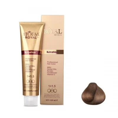 محصولات رویال آتوسا از برند قدیمی آتوسا برگرفته شده که جزء قدیمی ترین و معروف ترین برندهای ایران می باشد. آتوسا هم اکنون با برند با کیفیت تر خود به نام رویال آتوسا یکبار دیگر پا به عرصه محصولات آرایشی گذاشت و انصافا توانسته کیفیتی عالی و ممتاز را در این زمینه ارائه نماید.رنگ مویی غنی برای افرادی که می خواهند موهایی سالم و باطراوت داشته باشند . این رنگ مو با مواد اولیه مرغوب اروپایی و انواع روغن های گیاهی شامل روغن کنجد ، روغن زیتون ، روغن بادام و روغن نارگیل تولید شده است که موجب نرمی ، لطافت و براق شدن فوق العاده موها می گردد.
