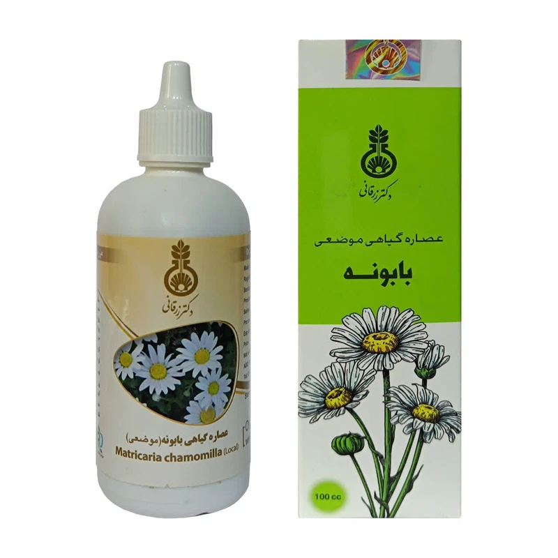 نحوه مصرف عصاره بابونه زمان : روزانه ۲ بار (قبل از استحمام) میزان : ۵ قطره (با توجه به محل مصرف) روش مصرف : روزانه ۲ بار و هـر بار به میزان ۵ قطــره (با توجه به محل مصرف) از عصــاره در محل موردنظر ماسـاژ داده شود. |