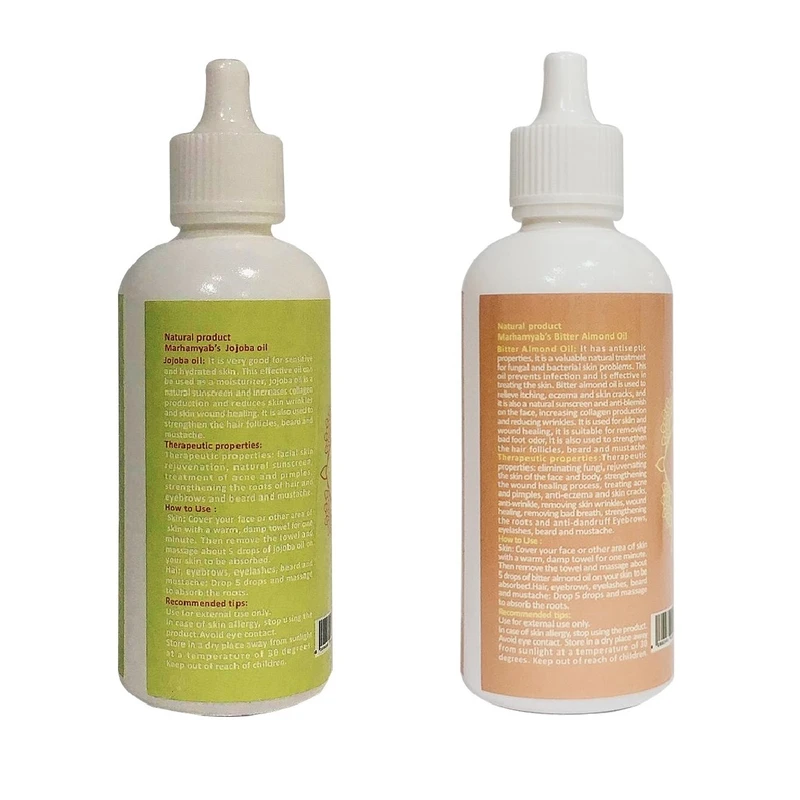 روغن گیاهی بادام تلخ و جوجوبا شامل آهن ، منگنز، مس، منیزیم ، فسفر و ویتامین B6 میشود. علاوه بر این برگها و دانههای این گیاهان دارای خواص ضدمیکروبی ، آنتی اکسیدانی، ضدالتهابی و ضدویروس است. در این روغن ها اسیدهای چرب ، اسید لینولئیک و اسید اولئیک موجود باعث ایجاد رطوبت، نرمی و لطافت پوست مو و ریش و سیبیل و مژه و ابرو میشود. مصرف روزانه آن باعث رشد آن می شود و پلیفنول موجود در آن به جوانسازی پوست سر شما کمک میکند. آنتیاکسیدانهای موجود در روغن ها از آسیب سلولهای پوستی سر جلوگیری میکند. این روغن ها با وجود سطح بالای ویتامین و خواص آنتیاکسیدانی به مو درخششخاصی میبخشد و باعث افزایش گردش خون موضعی در پوست و ریشه مو می شود لازم به ذکر است این روغن ها باعث تحریک رشد ریشه مو و ابرو و مژه و ریش و سبیل می شود و از ریزش مو و ابرو و مژه و ریش و سبیل جلوگیری می کند ، این روغن درمان کننده رفع مو خوره و تقویت کننده ریشه مو و ابرو و ریش وسبیل است.