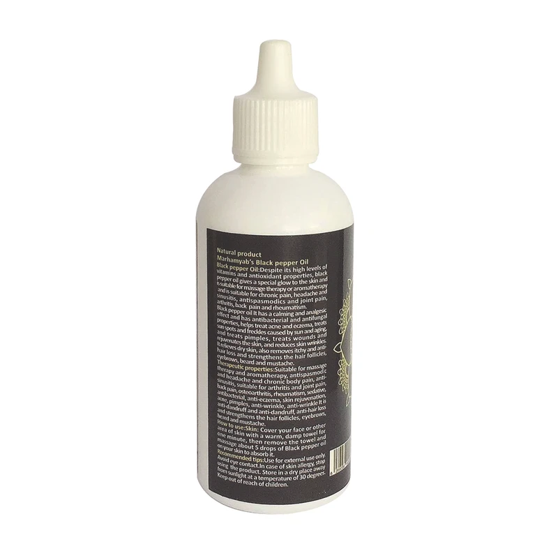فلفل سیاه شامل میوه های خشک شده تیره رنگ گیاه فلفل می باشد که بومی جنوب هند محسوب می شود. فلفل سیاه گیاهی بالارونده محسوب می شود که دارای ریشه های ساقه خیز و کوتاه می باشد. روغن فلفل سیاه با وجود سطح بالای ویتامین و خواص آنتی اکسیدانی به پوست درخشش خاصی می بخشد و مناسب ماساژ درمانی یا آروماتراپی و جهت دردهای مزمن و سردرد و سینوزیت، ضد اسپاسم و درد مفاصل و آرتروز و کمر درد و روماتیسم مناسب است ، روغن فلفل سیاه اثر آرامبخش و ضددرد و دارای خاصیت ضد باکتریی و ضد قارچی است ، به درمان آکنه و اگزما و درمان لک های پوستی و کک و مک ناشی از آفتاب و پیری و درمان جوش و درمان زخم کمک می کند ، همچنین باعث جوانسازی پوست و کاهش چین و چروک و رفع خشکی پوست می شود .