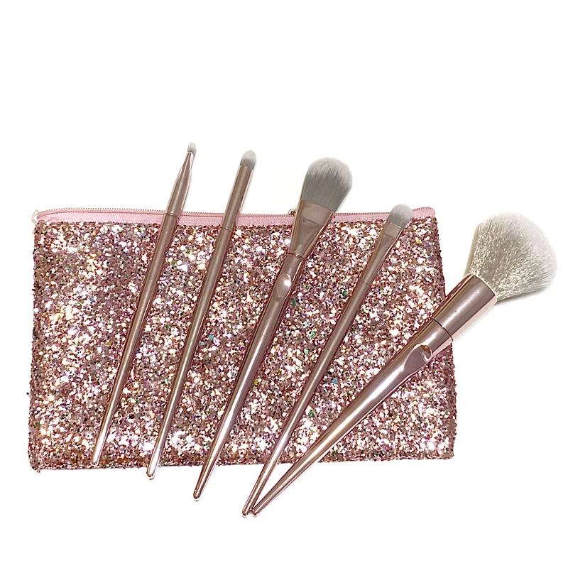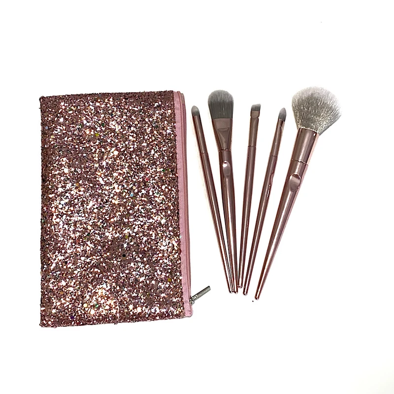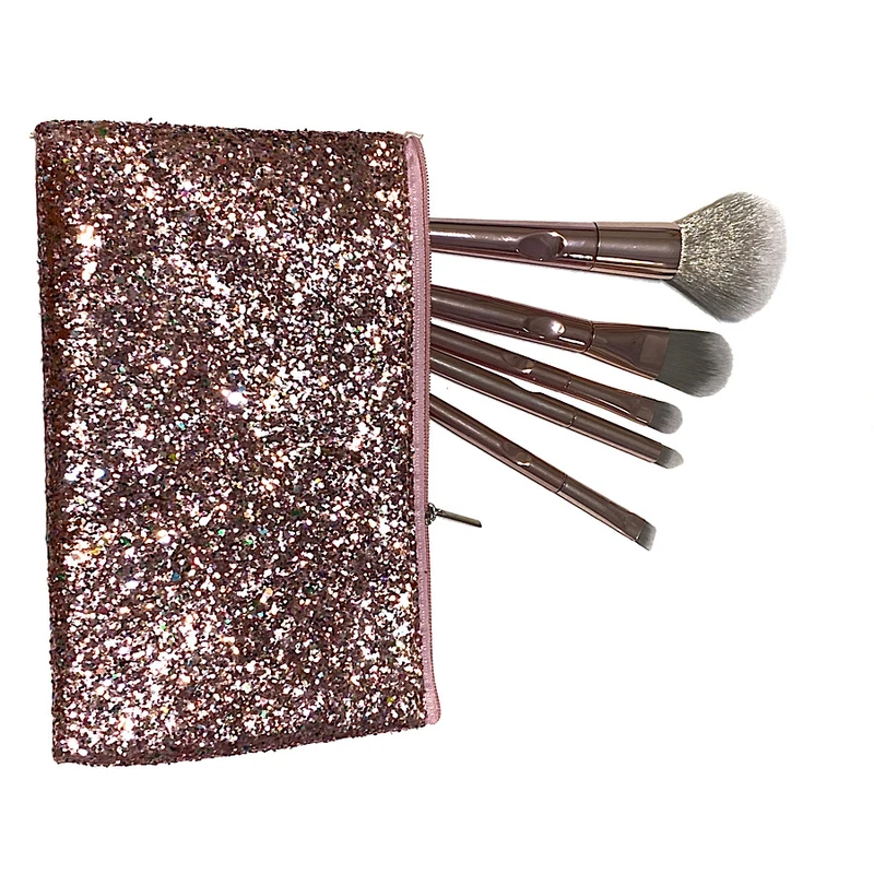 این مجموعه شامل ۵عدد براش آرایشی بسیار زیبا به رنگ رزگلد ، به همراه یک کیف آرایشی اکلیلی می باشد.برسها دارای سری نرم ولطیف می باشند که ایجاد حساسیت نمی کنند.این براشها قابل شستشو هستند .