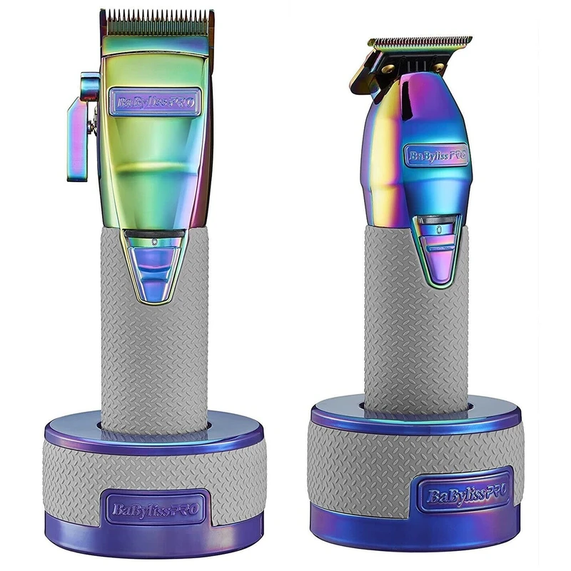 ست ماشین اصلاح سر و صورت حجم زن و خط زن حرف ای بابلیس پرو هفت رنگ Babyliss PRO LimitedFX Boost+ Collection Clipper & Trimmer – IRIDESCENT شامل ماشین اصلاح حجم زن بی سیم BaBylissPRO LimitedFX Boost و خط زن اسکلتون با ست پایه شارژ مدل FXHOLPKCTB-I – ChameleonFX است.