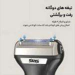 باتری قابل شارژ جنس تیغه استیل ضد زنگ قابلیت اصلاح سر و صورت مدت زمان شارژ 8-10 ساعت مدت زمان استفاده 45 دقیقه دارای شیور-خط زن و موزن کیفیت ساخت بالا طراحی آرگونومیک سرعت چرخش 7000 دور در دقیقه