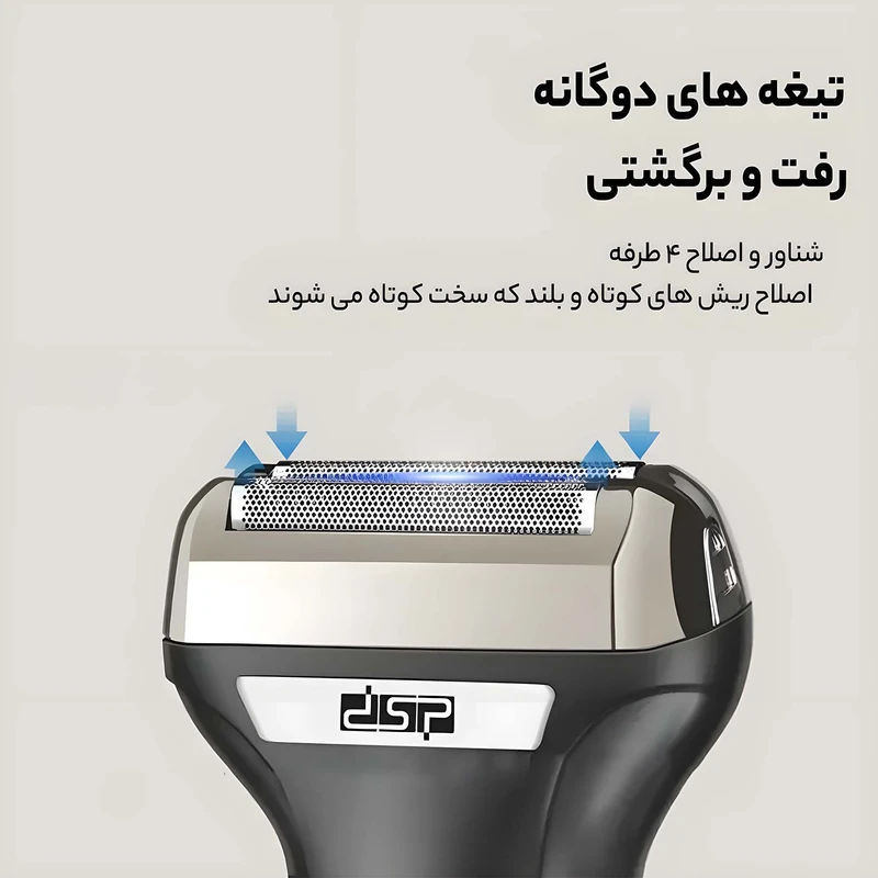 ست ماشین اصلاح موی صورت و بدن 3 در 1 دی اس پی Model:60090 دارای سه سری مختلف می باشد و برای کسانی که موهای صورت خود را با شماره‌ی صفر اصلاح می‌کنند مناسب خواهد بود. این ماشین اصلاح به یک خط زن و یک سری اصلاح موی گوش و بینی نیز مجهز شده است. خط زن برای مرتب کردن خط ریش یا قسمت‌های دیگر موهای صورت کاربرد دارد. همچنین طراحی ارگونومیک و وزن نسبتا کم دستگاه باعث می‌شود که کاربر هنگام اصلاح خسته نشود. روی این مدل یک نشانگر شارژ LED تعبیه شده است که هنگام به برق بودن دستگاه روشن می‌شود. گفتنی است همراه با این مدل درپوش محافظ و برس تمیزکننده هم ارائه می‌شود.