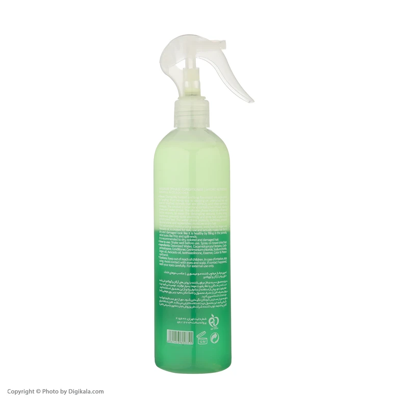 همه افراد سعی دارند از موهای خود به بهترین شیوه مراقبت کنند تا دچار ریزش، خشکی، موخوره و یا شکنندگی نشوند. برای انجام هرچه بهتر این مراقبت، بهتر است پس از آگاهی از جنس موهای خود، بهترین محصول مراقبتی را انتخاب و استفاده نماییم. اسپری دو فاز سبز میسوری، حاوی روغن آرگان و آووکادو، به طور خاص موهای خشک و آسیب دیده را مورد خطاب قرار داده است. این جنس مو، به سختی شانه و به راحتی دچار گره و موخوره می شود و پس از خشک شدن، ظاهری کدر و وز خواهد داشت؛ و به دنبال رنگ کردن های مکرر، حرارت بالای وسایل آرایشی، نور خورشید، و یا استفاده از شوینده های نامناسب به وجود می آید. اگر از این محصول به طرز صحیح، یعنی پس از شست و شو با شامپویی مناسب، بر روی ساقه های نیمه مرطوب موها اسپری کنید، می توانید شاهد سهولت در شانه پذیری، عدم ایجاد گره و نرمی و شفافیت پس از خشک شدن آن ها باشید.