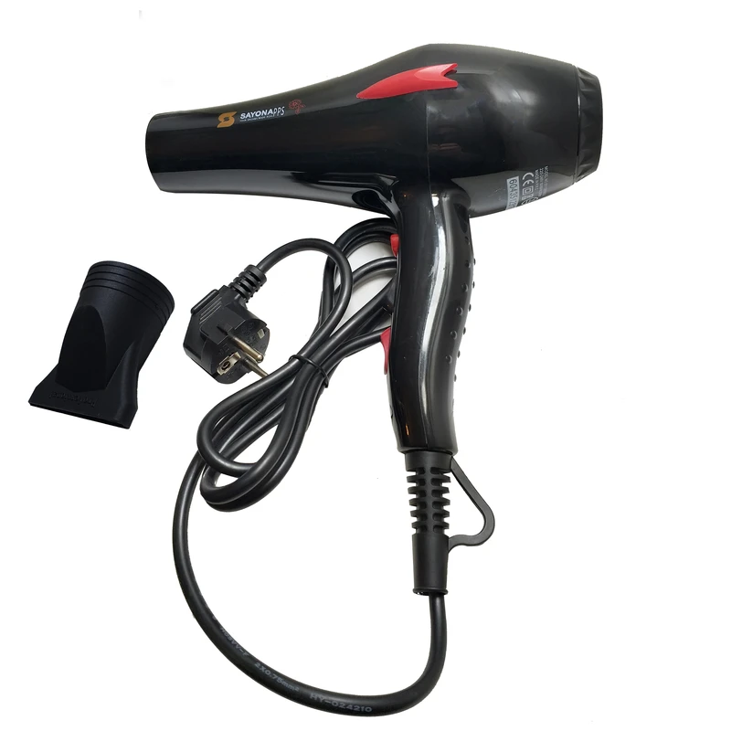 سایونا برند نام آشنا در تولید محصولات با کیفیت برقی است.یکی از این محصولات با کیفیت سشوار سايونا 2000 وات مدل SY-1300 است. این محصول با بهره گیری از موتور AC دارای قدرت پرتاب باد بسیار بالایی است و در دسته سشوار های حرفه ای قرار میگیرد.روی دسته این محصول 3 دکمه تعبیه شده که آنها تنظیم حرارت سشوار و سرعت دمیدن باد را به عهده دارند به این صورت که یک دکمه جهت ایجاد باد سرد به طور لحظه ای است. یک دکمه 3 حالت بدون حرارت، حرارت کم و حرارت زیاد را انجام میدهد. یک دکمه هم تنظیم 3 حالت باد خاموش، سرعت کم و سرعت زیاد را به عهده دارد.همچنین درون بسته بندی سری متمرکز کننده وجود دارد.