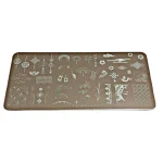 لاک معمولی مورد نظر خود را بزنید و صبر کنید تا کمی خشک شود و مقداری نوچی یا چسبندگی داشته باشد. پلاستیک آبیرنگ روی شابلون فلزی را بکنید. کنار طرح مورد نظر خود در شابلون فلزی، لاک معمولی بزنید. با زاویه 30 تا 45 درجه، کاردک یا کارت PVC را سریع و نرم روی شابلون بکشید. (به زاویه بسیار دقت کنید) مهر ناخن را روی شابلون به صورت غلطکی حرکت دهید تا طرح روی مهر منتقل شود. یادتان باشد که حتماً صبر کنید تا طرح روی مهر ناخن کاملاً خشک شود. مهر را به صورت غلطکی روی ناخن قرار دهید تا طرح روی صدف ناخن چاپ شود. یک لایه تاپ کت معمولی بزنید و کاملاً صبر کنید تا خشک شود. سری مهر ناخن را با چسب نواری تمیز کنید و شابلون فلزی را با استون صد درصد پاک کنید. |