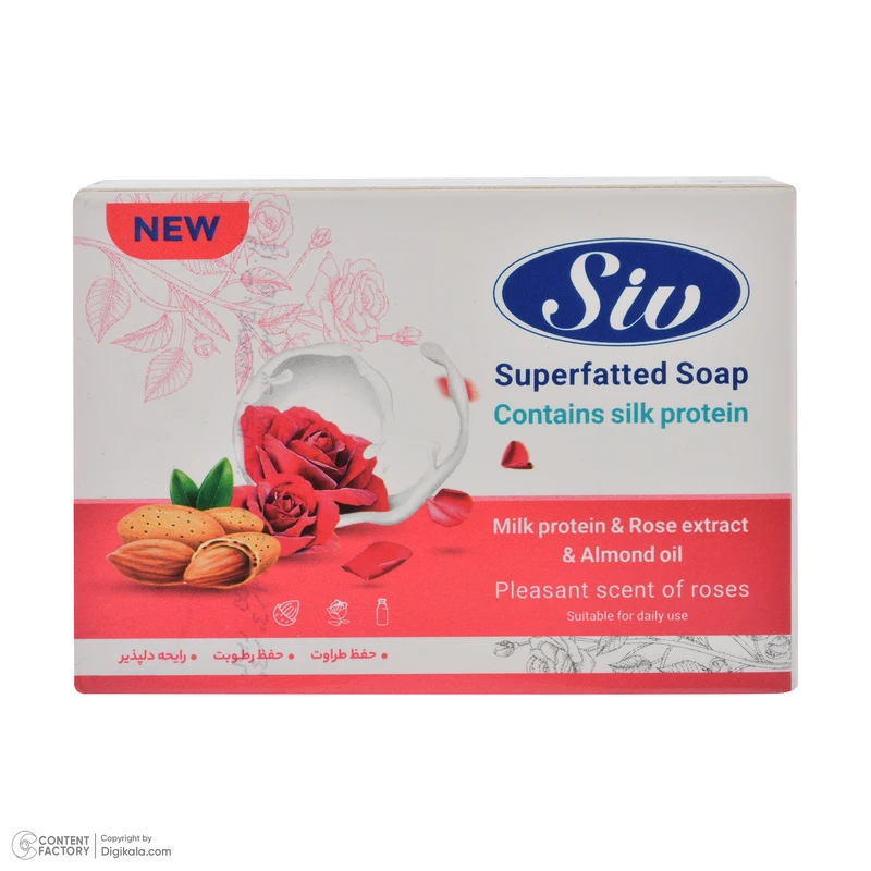 صابون شستشو صورت و بدن سیو مدل گل رز و بادام مناسب برای انواع پوست وزن 125 گرم بسته 5 عددی