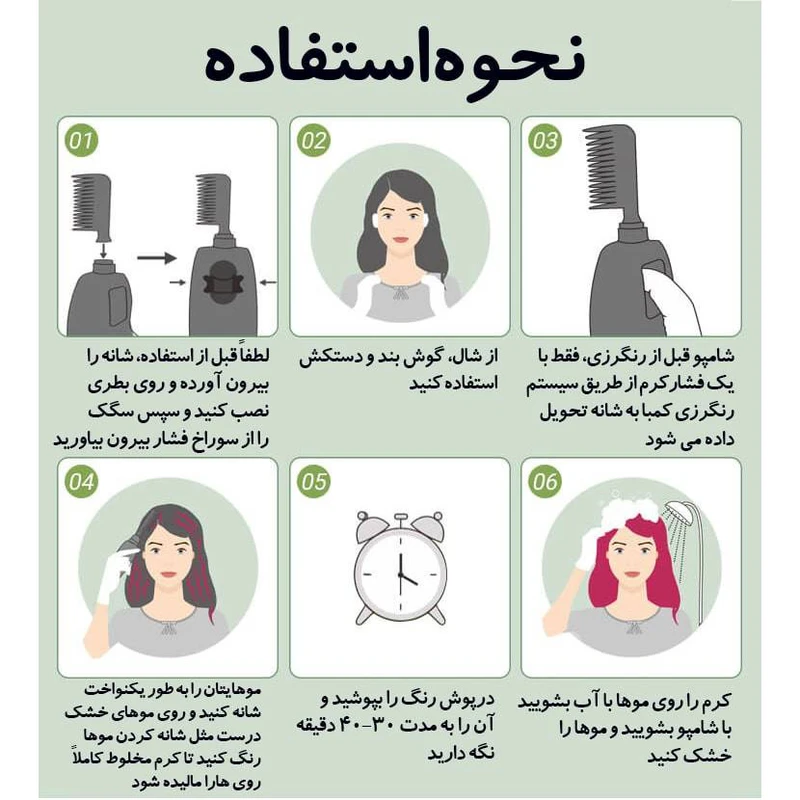 | نوع کرم، شامپو و اسپری رنگ مو |