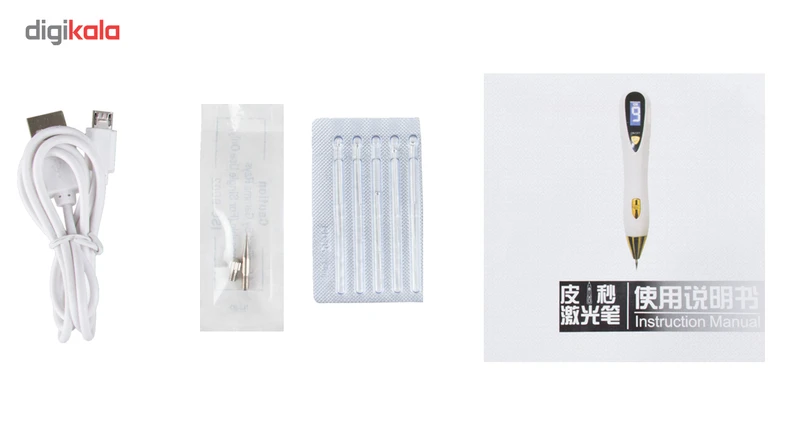اقلام درون بسته عبارت است از –قلم بیوتی پن 9 سطح چراغدار –کابل USB –سوزن دائمی -5 عدد سوزن یکبار مصرف -کاتالوگ |