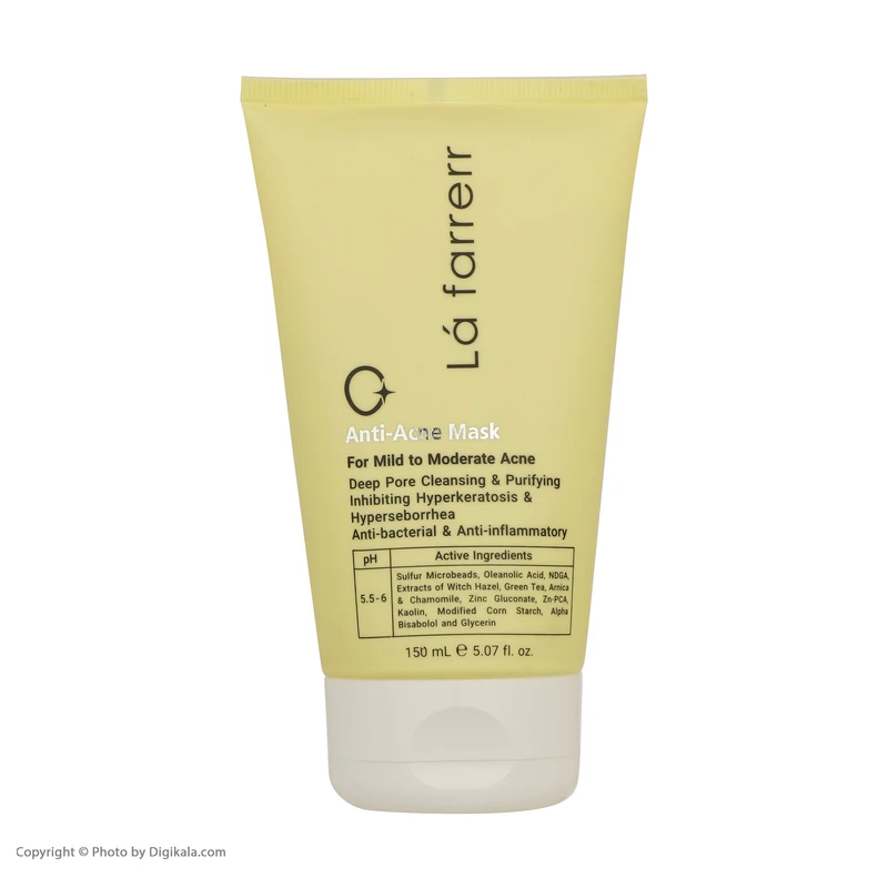 ماسک صورت لافارر مدل anti-acne حجم 150 میلی لیتر یکی از محصولات پرطرفدارد و محبوب انواع ماسک لافارر است. این ماسک ضدآکنه لافارر حاوی مواد موثر عصاره‌های گیاهی هاماملیس، چای سبز، بابونه، نشاسته ذرت اصلاح شده، کائولین و زینک پی‌سی‌آ و گوگرد لافارر است. محصول ماسک ضد آكنه لافارر با فرمولاسیون جدید و منحصر‌به‌فرد به‌منظور رفع آکنه‌های خفیف تا متوسط طراحی شده است. این محصول با از بین بردن آکنه در مدت زمان کوتاه می‌تواند به‌عنوان محصولی رقابتی با محصولات مشابه خودنمایی کند. یکی از مزایای ماسک ضد آکنه این است که از فرم میکرونیزه گوگرد نیز در آن استفاده شده است تا با قدرت نفوذپذیری بیشتر به منافذ پوست، اثرگذاری بهتری به‌ارمغان آورد.‌ این محصول به‌صورت ماسک تهیه شده تا مدت زمان بیشتری روی پوست باقی بماند از این‌رو با قدرت بیشتری آکنه‌ها و منافذ مسدود شده پوست را پاک‌سازی نماید. طریقه مصرف ماسک صورت لافارر مدل anti-acne حجم 150 میلی لیتر بسیار آسان است و به راحتی شسته می شود. در این محصول بوی گوگرد بهبود یافته تا مصرف‌کنندگان رایحه مطبوع‌تری را تجربه نمایند. ماسک ضد جوش لافارر حجم 150 میلی لیتر دارای شویندگی ملایم است و pH آن نیز درحد متعادلی قرار گرفته تا با خیال راحت بتوانید از آن استفاده نمایید. با توجه به مشخصات ماسک صورت لافارر مدل anti-acne حجم 150 میلی لیتر، این محصول ارزش خرید بسیار بالایی دارد.