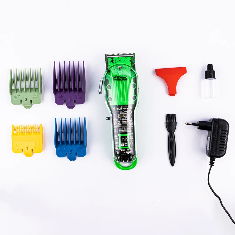 4 عدد شانه, ادپتور, برس تمیز کننده, درپوش حفاظتی تیغه, روغن |