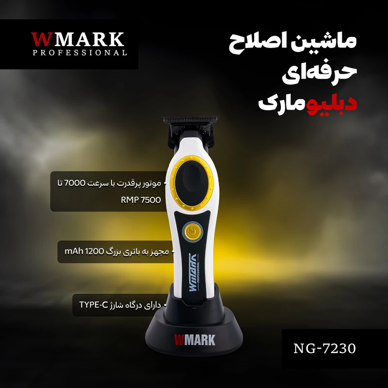 ماشین اصلاح حرفه‌ای WMARK مدل NG-7230 یکی از پیشرفته‌ترین و دقیق‌ترین ابزارهای اصلاح در دنیای آرایشگری است که با تکیه بر تکنولوژی روز و طراحی هوشمندانه، تجربه‌ای متفاوت و حرفه‌ای از اصلاح را فراهم می‌کند. برند WMARK که در میان فعالان حوزه آرایش و زیبایی به‌عنوان برندی تخصصی، باکیفیت و نوآور شناخته می‌شود، در این مدل تمام تمرکز خود را بر دقت، دوام و راحتی کاربر قرار داده است. استفاده از تیغه ثابت ساخته‌شده از استیل ضدزنگ .5CR15 با پوشش DLC (لایه‌ای بسیار مقاوم مشابه الماس) در کنار تیغه متحرک سرامیکی، باعث شده تا این دستگاه اصلاحی روان، دقیق و بدون آسیب به پوست ارائه دهد. ترکیب این تیغه‌ها علاوه‌بر ایجاد برش‌های نرم و یکنواخت، طول عمر بسیار بالایی برای دستگاه به همراه دارد.