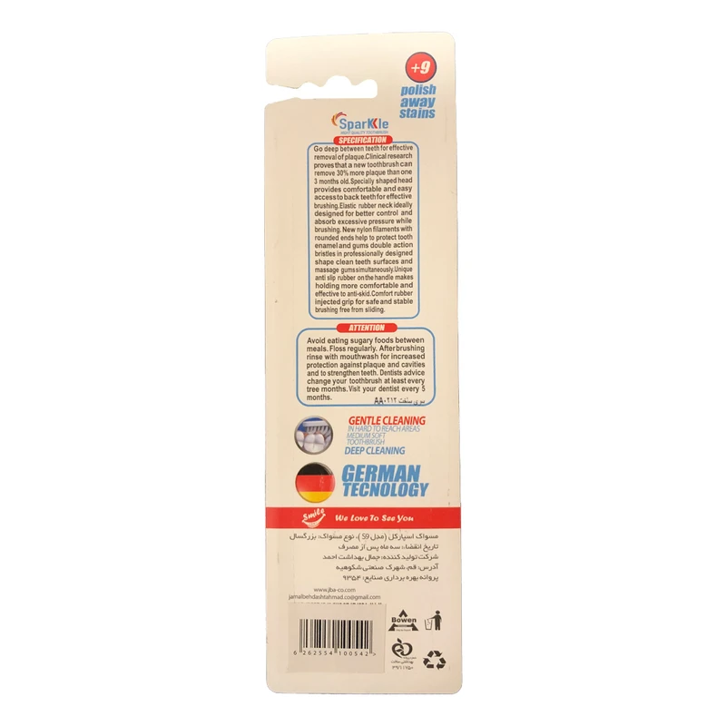 مسواک زدن صحیح و اصولی یکی از مهم ترین راه های حفظ سلامت دهان و دندان ها از سنین کودکی تا بزرگسالی می باشد. اطلاع از ویژگی های یک مسواک مناسب، اهمیت بسیار زیادی داشته و رعایت این اصول و ویژگی ها می تواند در کمک به حفظ سلامت دهان و دندان ها بسیار موثر باشد. مسواک های اسپارکل با طراحی ارگونومی و کیفیتی عالی راهی بازار مصرف شده اند. مسواک های نرم دارای الیاف یا دندانه های نازک، بلند و ظریف هستند. تمامی موارد مذکور از ویژگی های یک مسواک مناسب بوده و می تواند تمامی سطوح داخلی و خارجی دندان را تمیز نماید. توجه داشته باشید مسواک های نرم مقاومت کمتری نسبت به مسواک های متوسط و سخت داشته و احتیاج به تعویض سریع تر خواهند داشت. دندانه های این نوع از مسواک ها به سرعت فشرده و اصطلاحا له شده و قدرت پاک کنندگی خود را از دست می دهند. از جمله ویژگی های مثبت این نوع از مسواک ها، توانایی چرخش سریع و آسان مسواک در فضای داخل دهان است و مناسب ترین مسواک ها برای دندان ها و لثه های حساس است. شما با استفاده از مسواک اسپارکل با برس نرم میتوانید خطر زخم شدن دهان را تا حد قابل توجهی کاهش دهید. نخ دندان کمانی اسپارکل برای تمیز کردن سریع، آسان و موثر بین دندان ها طراحی شده است و امکان دسترسی به تمام دندان ها بدون آسیب زدن به آن ها را فراهم می آورد. همچنین نخ دندان کمانی اسپارکل مناسب برای دندان های ارتودنسی نیز می باشد.
