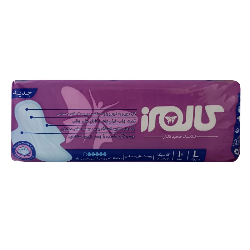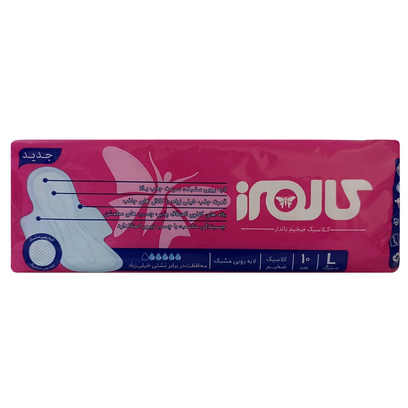 نوار بهداشتی کالمرز مدل بالدار مشبک کد K013 سایز بزرگ بسته ۱۰ عددی به همراه نوار بهداشتی کالمرز مدل بالدار معمولی کد K014 سایز بزرگ بسته 10 عددی