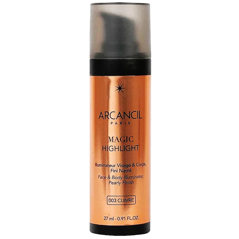 یکی از تکنیکهای آرایشی جهت داشتن چهره ای جوان، درخشان، گرم و پر از عشق، بازی با سایه ها و روشنی پوست است که عموما افراد تنها با ایجاد خطوط تیره سعی در ایجاد این مرزبندی دارند. اما امروزه با استفاده از محصولات مناسب مثل هایلایتر، میتوان بر سایه روشن پوست بیش از پیش تاکید داشت، تا ضمن آنکه قسمت های مورد نظر مانند گونه ها، اطراف چشم، نک بینی، پیشانی و حتی قسمت های از گردن و تر قوه بیشتر دیده شده، درخشان و پر نور شده، جلوه کند و دیده شود، نتیجه آرایش نیز طبیعی خواهد بود. کرم هایلایتر ارکانسیل ارائه درخششی فوق العاده دیدنی بر روی پوست دارای ثبات و ماندگاری بالایی داشته و از کیفیت بی نظیری برخوردار است. هایلایتر مجیک آرکانسیل حاوی ذرات شاین و درخشان ریز حاصل از مروارید صدف آبالون میکرو تصفیه شده محصولی بی نظیر با فرمولاسیونی ویژه و رنگ بندی براق و درخشان در تناژی گرم و محصور کننده برجستگی گونه،بینی، پیشانی، چانه، و … حتی به عنوان سایه چشم جذابیت هر چهره ای را بیشتر کرده، نهایت زیبایی آرایش را به هر سیمایی هدیه داده، و تکمیل کننده نهایی آرایش میباشد به طوری که باعث میشود همچن مرواریدی بدرخشید. این محصول دارای بافتی سبک و نرم است که به راحتی بر روی گونه ها و سایر اعضای صورت نشسته و جذابیت آرایش را به حد کمال میرساند. خطوط تیره و روشن یا به عبارتی ایجاد سایه روشن و هایلایت در صورت موجب میگردد تا بیننده بتوانید قسمت هایی از صورت را برجسته تر دیده و توجه بیننده به آن قسمت ها بیشتر جلب خواهد شد. هایلایتر صورت راهی ساده و بیدردسر برای جذابیت بیشتر و داشتن ظاهری شاداب، جوان، پر نشاط، گرم و درخشان است. فرمولاسیون منحصر به فرد منعکس کننده ذرات ریز آن انعکاس دهنده نور بوده که توجه هر کسی را به صورت شما جلب خواهد کرد.فرمولاسیون سبک، شفاف، فاقد چربی، نرم و درخشان آن با ایجاد حالت ابریشمی و بافتی روشن روی پوست صورت برای مدت طولانی و ضد آب و تعریق مینشیند. همچنین ترکیبات به کار رفته از جمله فیلر میکرولیز شده ذرات آمونیت، باعث شده تا برخلاف دیگر هایلایترها به خوبی و به تنهایی یا روی آرایش و و به طور مرطوب یا به صورت خشک استفاده از آن بهترین نتیجه را حاصل داشته باشد، باعث بسته شدن منافذ پوست نشده و اجازه تنفس و در نتیجه شادابی پوست را داده، پوست را چرب نکرده و حالتی غیر طبیعی ندارد.