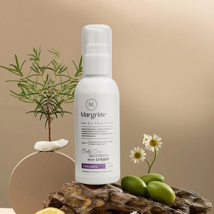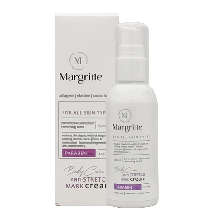 کرم رفع ترک بدن مارگریت یک کرم استرچ مارک بسیار قوی برای رفع و کاهش انواع ترک های پوستی است. ترکیبات موثر و قوی این کرم علاوه بر بازسازی بخشهای آسیب دیده پوست، آثار زخم را از بین برده و عمق و سایز ترکهای پوستی را کاهش می دهد.