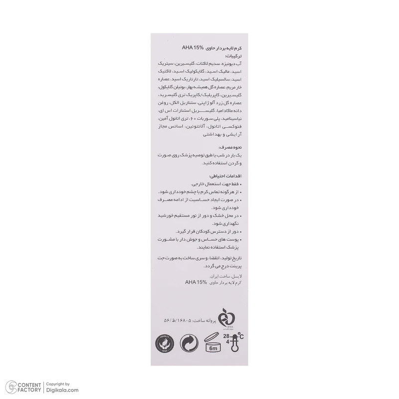 یک بار در شب یا طبق توصیه پزشک روی صورت و گردن استفاده کنید.