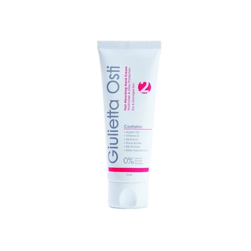 کرم دست جذب سریع پوست خشک و آسیب دیده جولیتا اُستی از ترکیب موادی مانند روغن آرگان، شی باتر مغذی و نرم کننده، ویتامین E حاوی آنتی اکسیدان ها و کاهنده عوامل مخرب، آلانتوئین کمک به بازسازی کننده سلول های پوست و ضد التهاب، پروتئین ابریشم کاهش دهنده چین و چروک، عصاره آلوئه ورا – کمک به بازسازی سلول ها و مرطوب کننده تولید شده است.