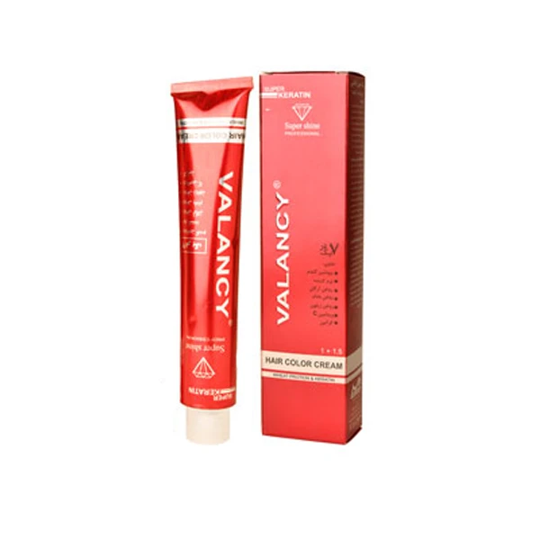 محتویات ارائه شده در کیت شامل یک تیوب 100میلی لیتری رنگ مو والانسی و یک عدد اکسیدان 150 میلی لیتری والانسی هم پایه رنگ . |